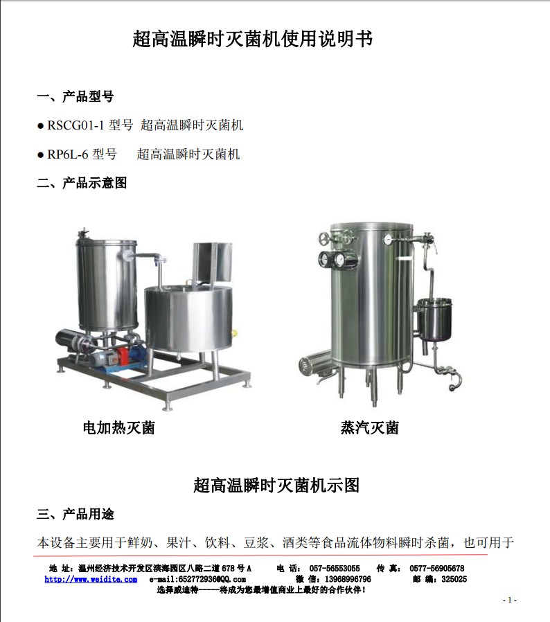 超高溫瞬時滅菌機(jī)使用說明書