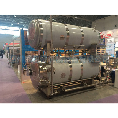 雙層水浴殺菌鍋可以短時間滅菌;采用熱水循環(huán)進行殺菌,熱水罐高溫水注入釜內(nèi),減少處理水和熱量消耗縮短了滅菌時間,提高了工作效率。