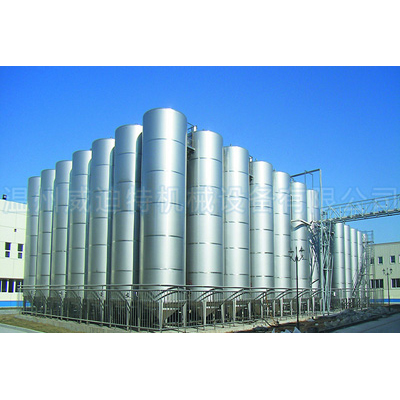 大型啤酒發(fā)酵罐--啤酒發(fā)酵系統(tǒng)有發(fā)酵罐、清酒罐、暫存罐組成;發(fā)酵是啤酒生產(chǎn)中極其重要的工藝過程。是一個有酵母參與的復雜的生化反應過程,發(fā)酵罐為錐底圓柱形,罐體具備自身冷卻裝置,可很容易地控制發(fā)酵溫度;罐底為錐形,回收酵母及清洗都很方便;罐體具有CIP清洗系統(tǒng),保證了生產(chǎn)中的衛(wèi)生安全。具備了先進的國際發(fā)酵工程技術,可采用PLC自動控溫技術。