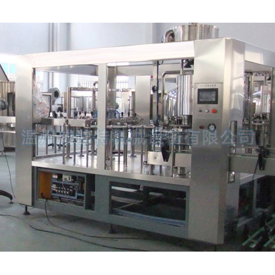 本機集沖瓶、灌裝、旋蓋三位一體,PLC自動控制。經(jīng)過預處理的PET空瓶,通過無菌水沖洗后自動進入灌裝封口工序。