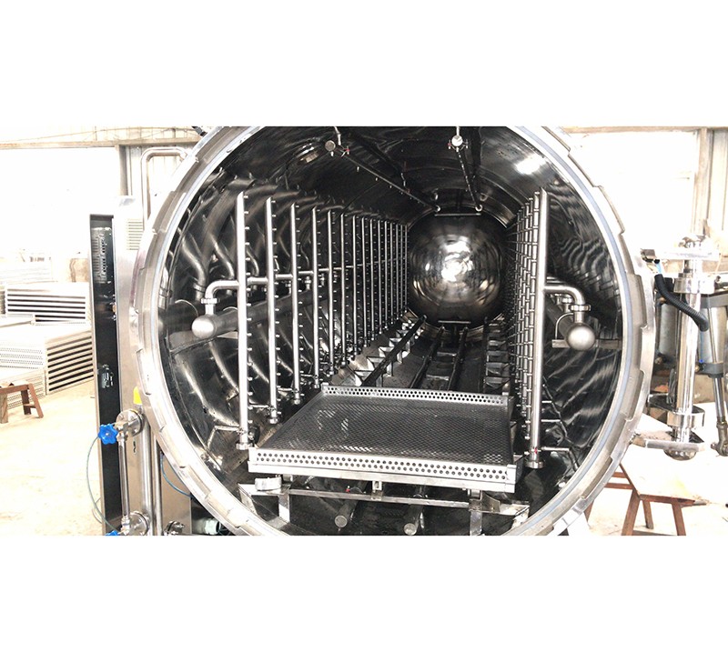 該設(shè)備由鍋體、鍋蓋、開啟裝置、鎖緊模塊、安全聯(lián)鎖裝置、軌道、滅菌框、蒸汽噴管及若干管口等組成、鍋蓋密封采用充氣式硅膠耐溫密封圈,密封可靠,使用壽命長。具有受熱面積大,熱效率高、加熱均勻、液料沸騰時(shí)間短、加熱溫度容易控制等特點(diǎn)、殺菌鍋主要用于食品行業(yè)、醫(yī)藥等各領(lǐng)域。