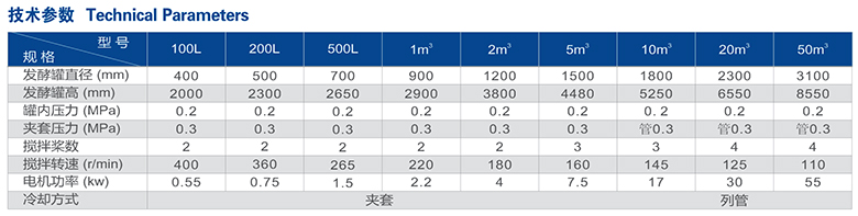 Tank body structure: provided with special sampling valve and discharging valve for fermenting tank, as well as standard temperature, PH, and DO sensor vents.